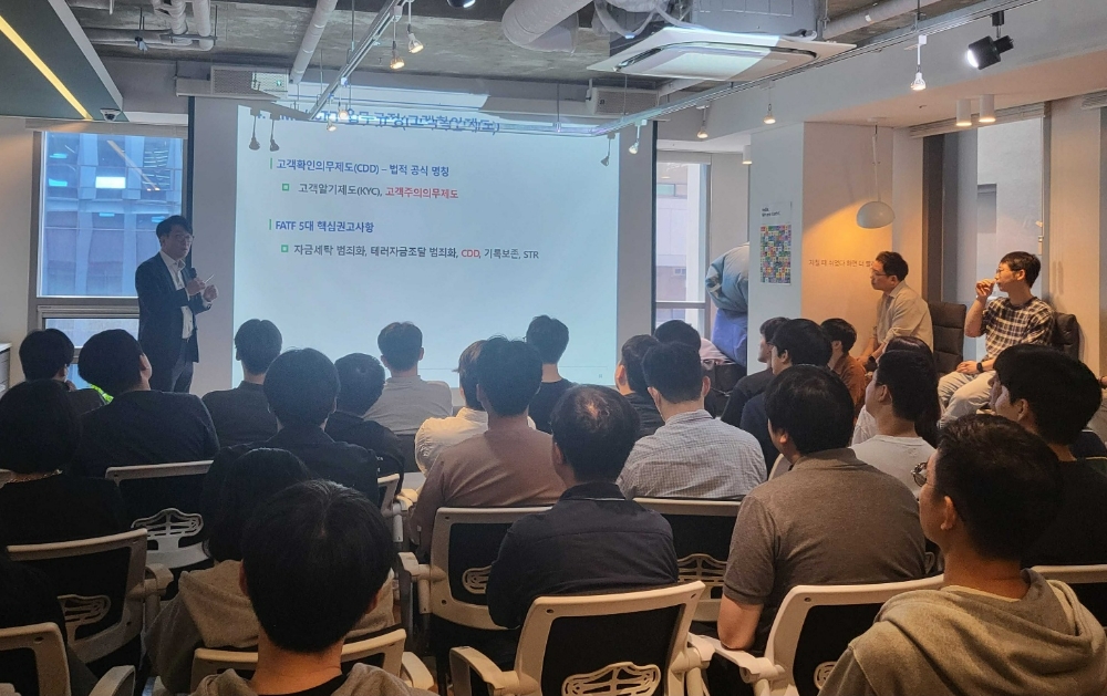 올해 코빗의 전사 자금세탁방지 교육 프로그램은 두 가지로 진행됐다. 먼저 DAXA(디지털자산거래소공동협의체) 자금세탁방지분과의 자문위원으로 활동 중인 이민섭 김앤장 자금세탁방지팀장이 지난 13일 코빗을 방문해 임직원들에게 자금세탁방지 제도의 배경 및 최신 동향에 관해 설명했다.