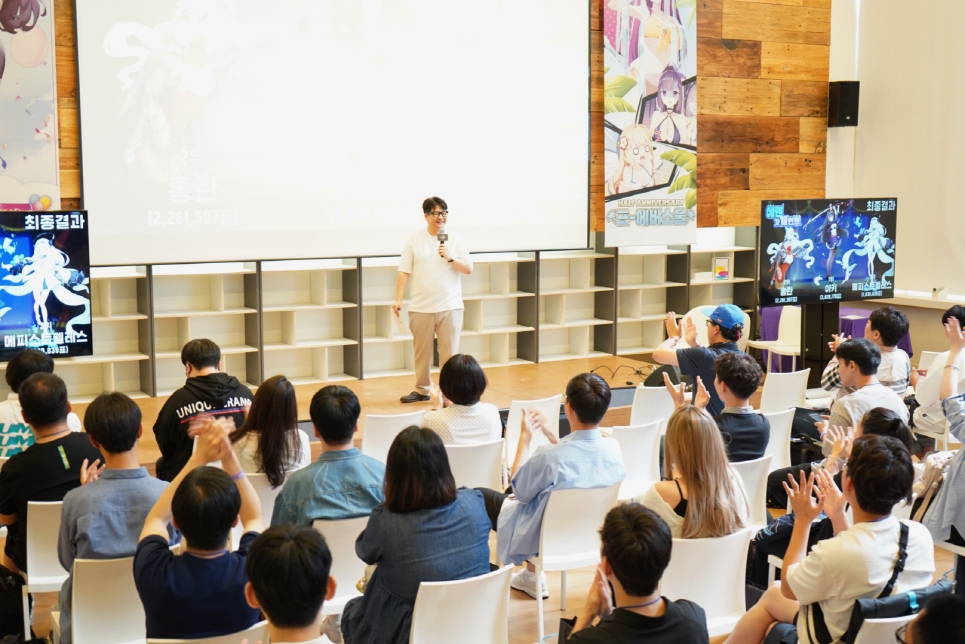이미지 확대보기지난 8일 서울 명동에 위치한 커뮤니티하우스 마실에서 개최된 이번 행사는 게임 출시 후 6개월간 '에버소울'을 사랑해 준 이용자들에게 감사의 마음을 전달하기 위해 마련됐다. 현장에는 참가를 신청한 1800여 명의 이용자 중 추첨을 통해 선발된 50명이 참여했다.