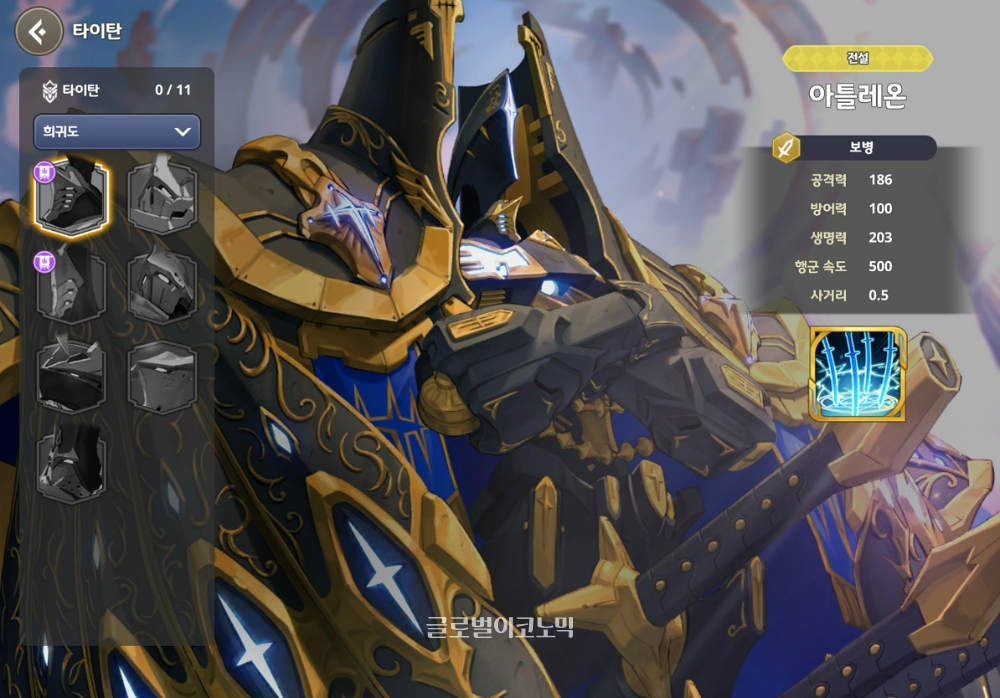 전장에서 조그마한 부대 사이 사이 큼지막하게 자리하는 타이탄은 최종병기라는 설명에 걸맞게 압도적인 파괴력을 자랑한다. 타이탄도 △고유 △고급 등급이 존재하며 게이머가 소유하지는 못하지만 연맹에 귀속돼 사용되는 △전설 등급 타이탄도 존재한다.
