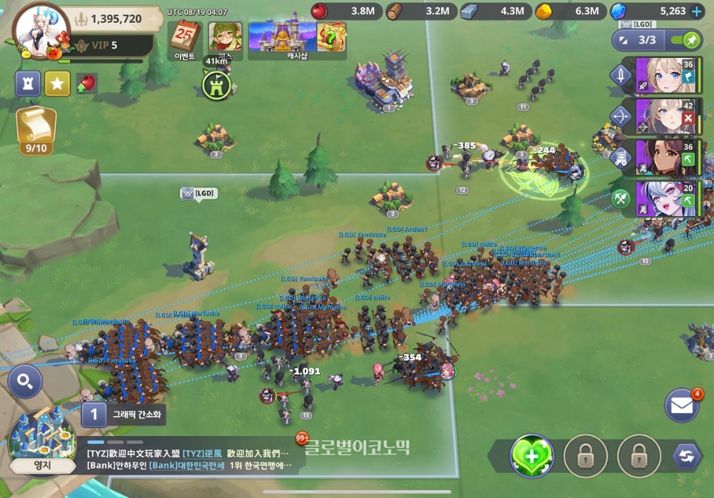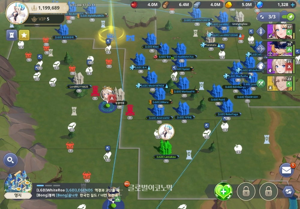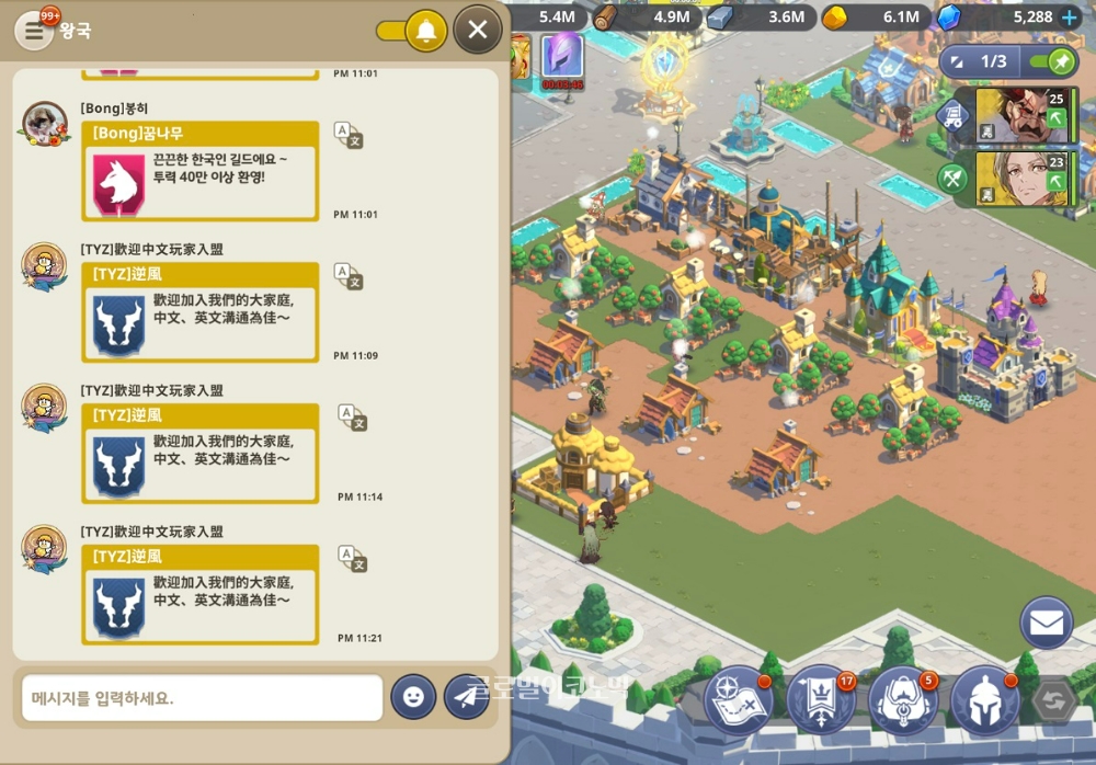 이미지 확대보기그랜드크로스의 핵심은 '연맹'에 있다고 해도 과언이 아니다. 이 게임은 전세계 동시 서비스됐으며 동일한 서버에서 함께 게임을 하고 연맹 간 협력(동맹)을 하거나 때론 적대적으로 경쟁한다. 앞서 엔씨소프트가 전세계 게이머가 동등하게 게임을 즐기고 몰입할 수 있는 '글로벌 원빌드'를 '리니지W'에 적용했는데 그랜드크로스도 전세계 게이머들이 함께 게임을 즐긴다. 연맹 또한 다국적 게이머들이 모여 각자 대화를 나누는데 실시간 번역기가 채팅창에 제공돼 언어의 장벽을 거의 느끼기 어렵다.