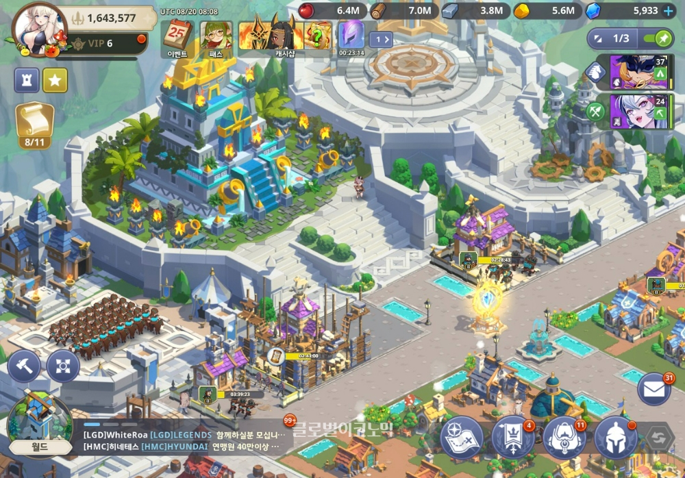 이미지 확대보기캐릭터와의 상호작용도 아쉽다. 영웅 캐릭터를 터치해도 나오는 음성은 무척 단조롭고, 캐릭터 소개 화면에서 게이머에 반응하는 요소가 딱히 없다. '블루 아카이브'나 '에버소울' 같은 게임에서 캐릭터를 바탕화면에 띄우거나 갤러리처럼 감상하는 모드, 그리고 터치할 때마다 수시로 말을 거는 등 게이머가 게임에 동화되도록 하는 요소가 없다. 순전히 전략을 짜내 영지를 꾸미고 전투만 벌이는 게임으로 보기에는 영웅들의 매력요소가 많은데 그런 점을 잘 살리지 못한 부분은 못내 아쉽다.