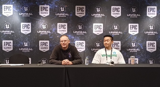 언리얼 서밋 기조 연설이 마무리된 후 스위니 대표는 박성철 에픽게임즈 코리아 대표와 더불어 미디어 인터뷰를 진행했다. 이와 별개로 국내 언리얼 엔진 개발자들과도 간담회를 가졌다.