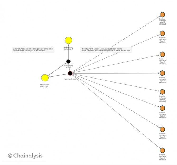 블록체인 데이터 분석기업 체이널리시스(chainalysis)는 자체 조사하던 최근 데이터에서 북한과 연계된 해킹 그룹이 불법 암호화폐(가상자산) 세탁처로 알려진 러시아 거래소에서 거래를 늘리고 있다는 사실을 발견했다.