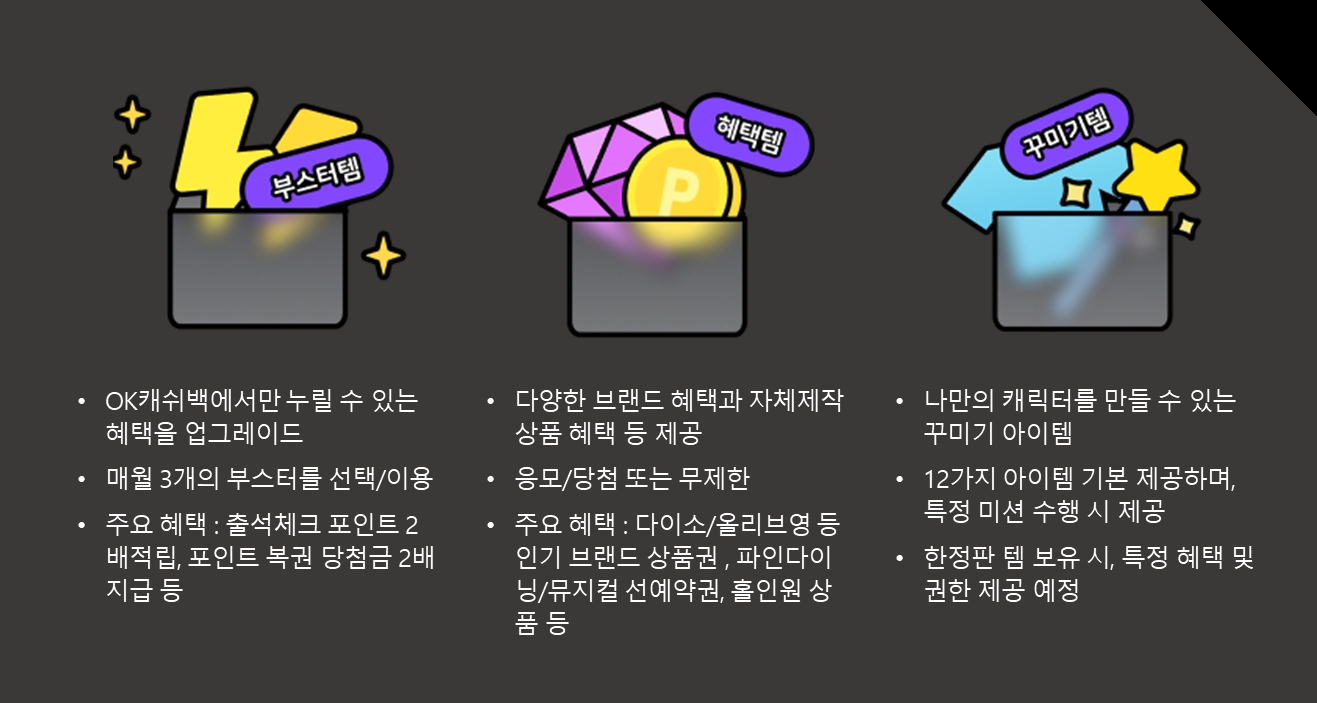 ◇ '부스터'·'혜택'·'꾸미기' 템으로 구성된 OK캐쉬백 NFT 다이나믹 멤버십
