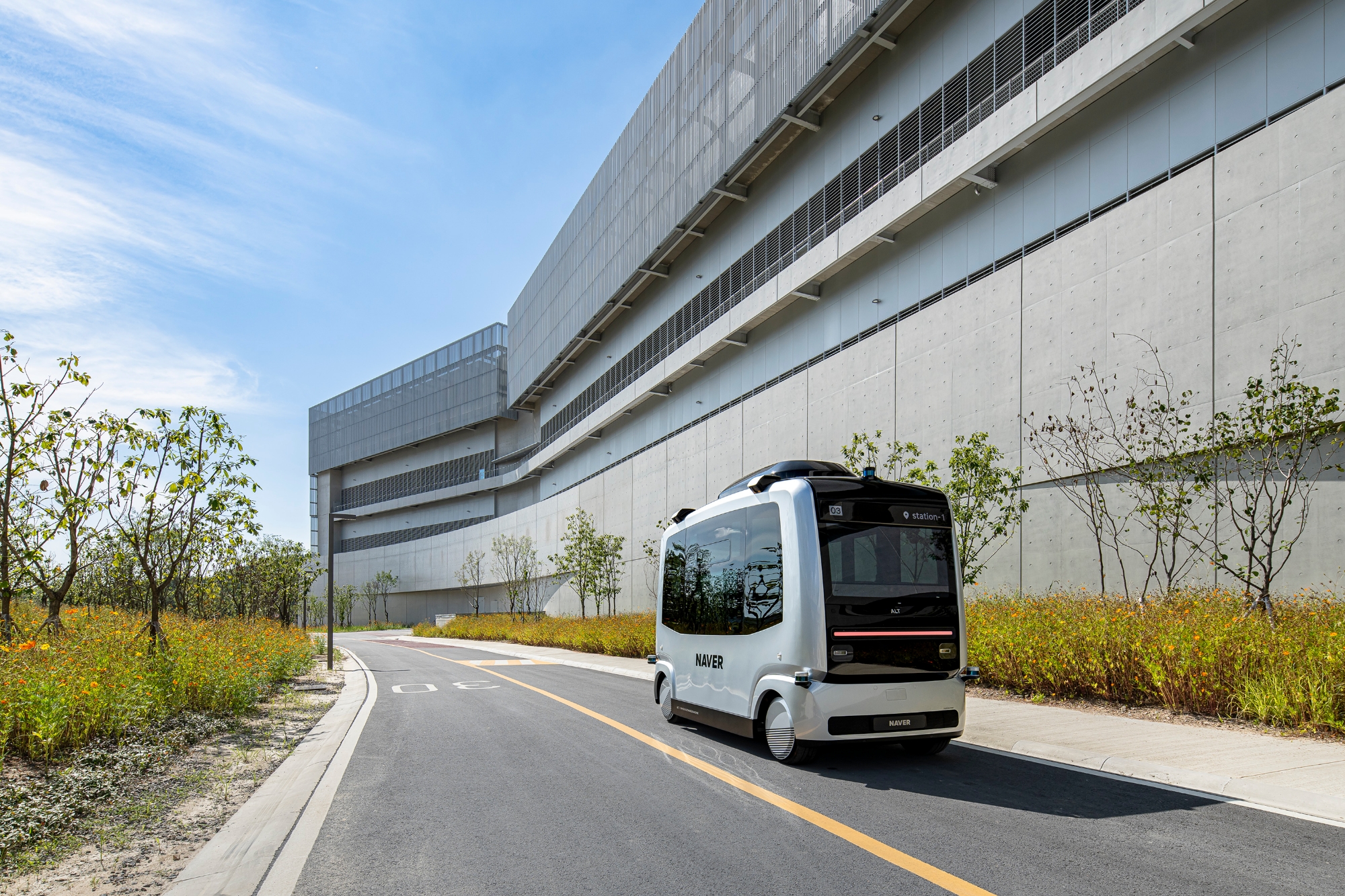 이미지 확대보기'각 세종'은 규모가 압도적으로 큰 만큼 운영과 관리의 효율성 극대화를 위해 인공지능(AI)·로봇·자율주행·디지털트윈 등 팀네이버의 기술이 대거 적용됐다. 네이버랩스에서 자체 개발한 로봇 자동화 시스템이 구현돼 데이터센터 IT창고의 핵심 자산인 서버를 관리하는 역할의 '세로'와 서버실과 창고를 오가며 고중량의 자산을 운반하는 '가로'를 통해 자산의 흐름을 실시간으로 추적해 하나의 시스템으로 통합 관리한다. 더불어 '각 세종' 부지 내에 자율주행 셔틀인 알트비(ALT-B)가 '각 세종'의 주요 거점을 연결하며 사람들의 이동을 돕는다.