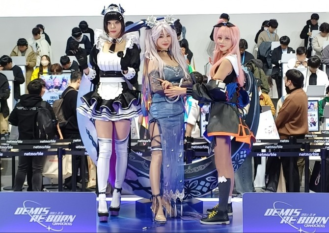 이미지 확대보기지스타 2023 넷마블 '데미스 리본' 부스의 코스프레 모델들. 캐릭터는 왼쪽부터 '오프네', '셀레네', '오딘'. 사진=이원용 기자 한국 최대 게임 전시 행사 '지스타 2023'의 꽃은 단연 코스프레였다. 올해는 유달리 미소녀들이 중심이 되는 '서브컬처 게임'이 많았던 만큼, 공식 부스에서 고품격 코스프레를 선보인 사례가 적지 않았다.