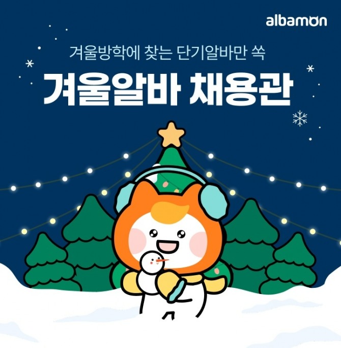 알바몬 관계자는 "아르바이트 대표 성수기인 겨울 시즌, 겨울 알바자리를 찾는 구직자를 위해 테마별 채용관을 열었다"며 "알바몬 채용관 서비스를 통해 올겨울 원하는 알바 구직에 성공하길 바란다"고 말했다.