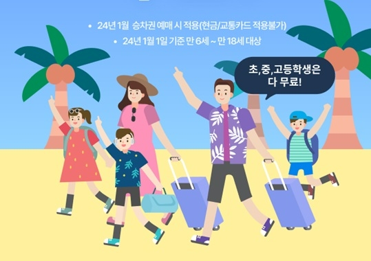 프로모션은 TMAP 공항버스 앱(App)과 전용 홈페이지에서 인천국제공항행 탑승권을 사전 예매한 만 6세부터 만 18세 승객이 대상이며, 기간은 1~3월까지다. 예컨대 4인 가족(성인 2명·청소년 2명)이 공항버스를 이용할 경우 정가 대비 50% 저렴한 금액으로 승차권을 구매할 수 있다.