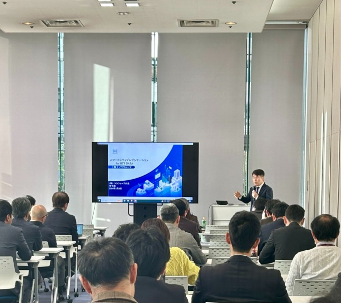 이날 스마트시티 세미나를 위해 일본 전국에 있는 NTT DATA 사의 주요 임직원들이 오사카에 있는 NTT DATA KANSAI에 모여 쏘우웨이브사가 개발한 초대규모 인공지능 초장거리 IoT 기술과 지진감지 센서 및 인공지능 게이트웨이, 초장거리 무선 CCTV 등을 활용한 세미나에 참석했다.