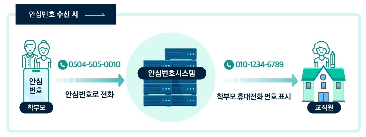 학부모와 교직원간 개인번호 노출 없이 연락할 수 있는 안심번호 솔루션 제공