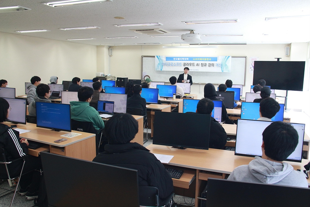이미지 확대보기부산폴리텍대학 소프트웨어융합과 학생들은 인공지능 윤리와 생성AI, 마이크로소프트 클라우드 서비스 및 플랫폼 애저(Azure)와 관련 AI 기술을 배운다. 또한, 마이크로소프트 자격증인 AI-900 응시와 함께 학생들의 관심분야에 대해 해당 수업과 연계된 프로젝트도 진행한다.
