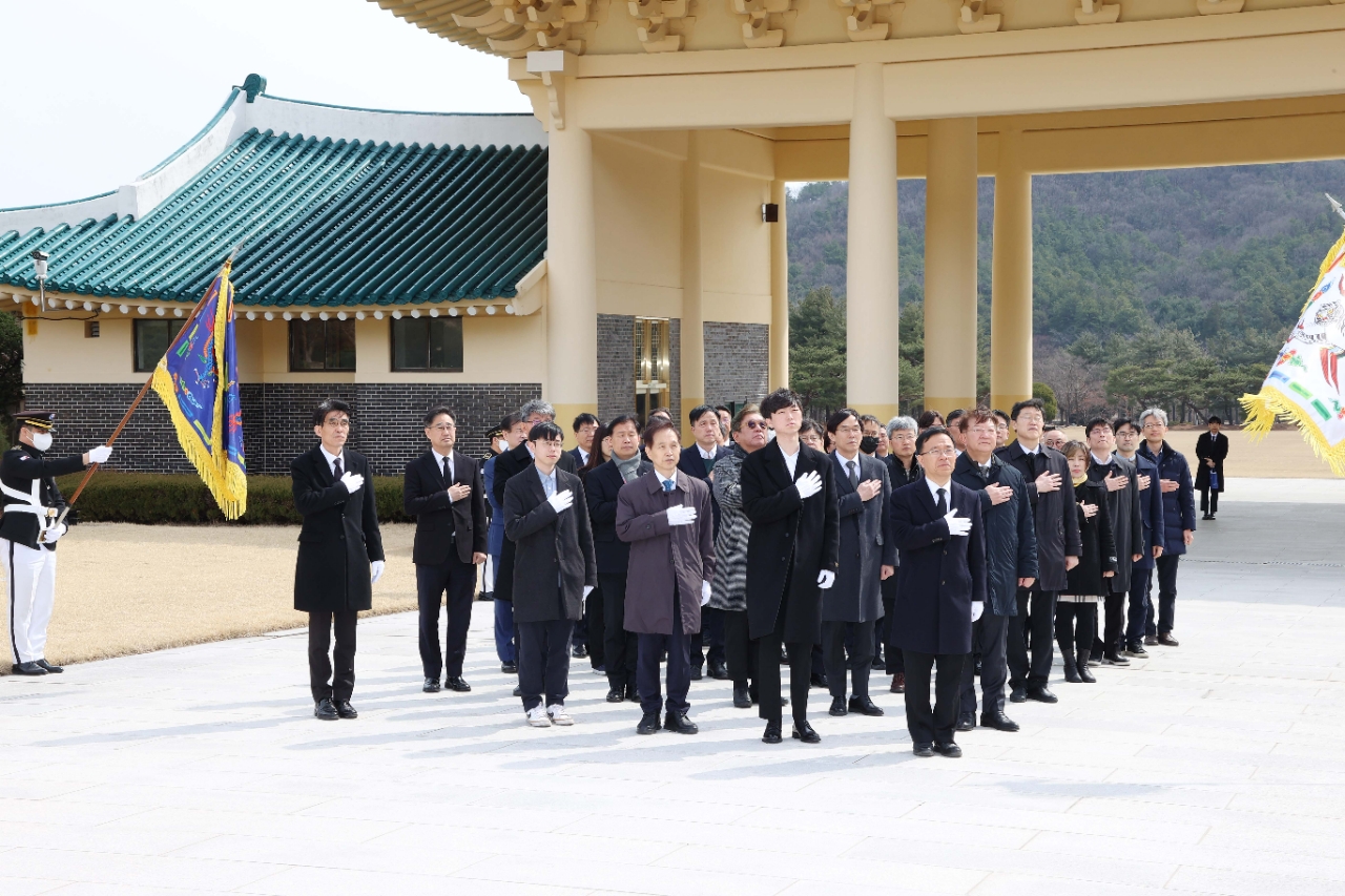 이미지 확대보기이날 참배에는 이광형 총장과 이은우 감사를 비롯하여 부총장, 단과대학장, 처장, 학과장과 학부, 대학원 총학생회 학생 대표 등 약 40명이 참여했다.
