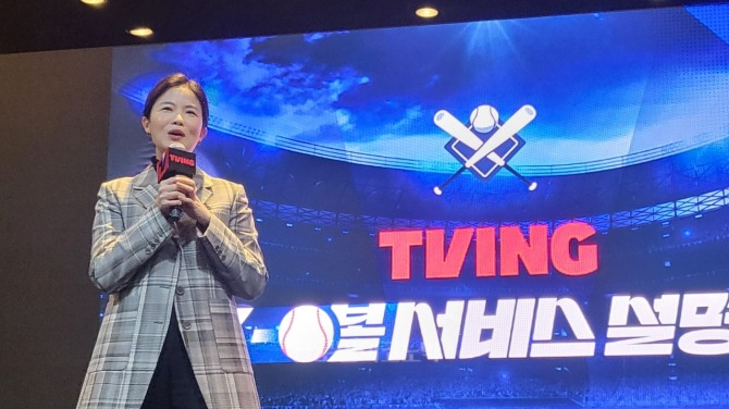 연단에 선 최주희 티빙 대표는 "지난 주말 있었던 프로야구 시범 경기 중계에 대해 많은 야구팬들이 우려와 개선점을 요구한 것에 대해 잘 알고 있다. 이번 주 내내 티빙 관계자들이 커뮤니티 게시글과 기사 모니터링을 지속해 시범 경기 중계 서비스에 대한 미흡점을 숙지하고 충분히 공감했다"며 "실시간 대응을 통해 해결 가능한 이슈는 바로 조치를 취했고 남아 있는 이슈는 개선 방안을 적극적으로 검토 중이다"라고 말했다.
