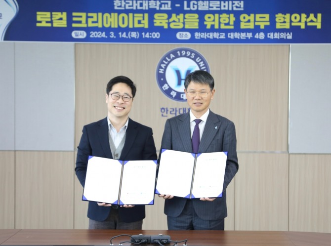이미지 확대보기LG헬로비전과 한라대학교는 로컬 콘텐츠 크리에이터 양성을 위한 업무협약(MOU)을 체결했다고 15일 밝혔다. 지역 대학생들이 직접 로컬 콘텐츠를 기획하고 제작할 수 있도록 지원해 지역 관광 및 경제 활성화를 이끌겠다는 목표이다.