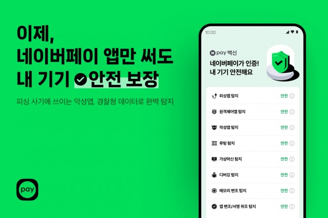 네이버페이가 제공하는 백신 기능은 서울경찰청과의 협력을 통해 보안검사 시 최신 금융사기 데이터베이스를 기반으로 해 가장 최신 수법의 피싱, 스미싱까지 정확하게 걸러낸다. 서울경찰청 피싱범죄수사팀은 택배사의 배송 문자나 모바일 청첩장 등 교묘하게 사칭하는 스미싱 문자나 보이스피싱에 악용되는 악성앱 등 최신 수법을 직접 수집해 금융사기 데이터베이스를 구축하고 있다.