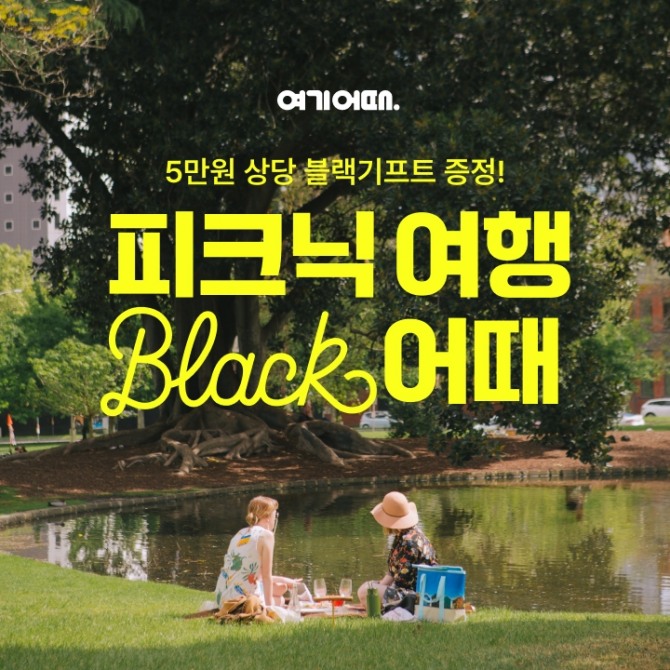 이미지 확대보기대한민국 대표 여행·여가 플랫폼 여기어때가 '피크닉 여행'을 테마로 '두 번째 블랙 기프트 패키지'를 선보인다. 블랙 기프트 패키지는 여기어때 블랙만의 특별한 숙박 경험을 제공하기 위해 기획한 상품이다. 여기어때 블랙은 호텔, 리조트, 펜션 등을 전문 에디터가 직접 평가 후 선별한 프리미엄 숙소 큐레이션 서비스다.