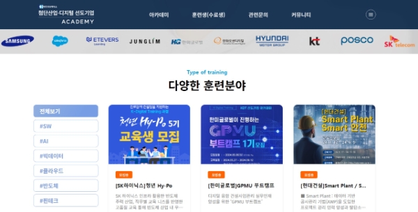 선도 기업과 담당 과정은 구체적으로 △두산로보틱스: 지능형 로보틱스 엔지니어(350명 양성) △한화오션디지털: 오션 DX 아카데미(100명 양성) △한미글로벌: GPMU 부트캠프(90명 양성) △정림건축: 아카데미 디지털 유닛(90명 양성) △에티버스: 언리얼 엔진 3D 아티스트(50여 명 양성)이다.