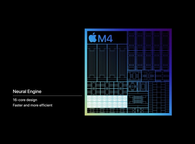 애플은 M4 칩이 “강력한 AI를 위한 칩”이라고 강조하면서 AI 가속 기능인 ‘뉴럴 엔진’의 성능도 역대 가장 빠르다고 주장했다.
