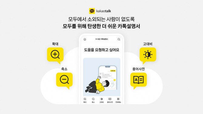 이미지 확대보기'더 쉬운 카톡 설명서'는 발달장애인과 시니어, 저시력자 등 디지털 약자들의 카카오톡 이용 진입 장벽을 낮추기 위한 목적으로 마련됐다. 비영리교육기관 피치마켓과 협업해 세 차례에 걸쳐 발달장애인과 보호자, 교육자 인터뷰를 진행해 디지털 소외계층 당사자들의 의견을 적극 반영했다.