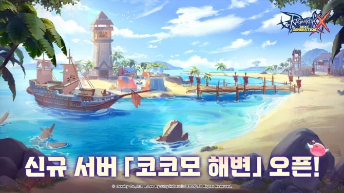 그라비티는 신규 서버 오픈을 기념해 다채로운 이벤트를 준비했다. 먼저 6월 4일 오전 4시 59분까지 코코모 해변 서버에서 캐릭터 생성 후 베이스 레벨 30 이상 달성 시 기존 서버에서 충전했던 다이아를 신규 서버 캐릭터로 반환해 준다. 6월 11일 오전 5시까지는 퀘스트 클리어 없이 모든 직업의 쉐도우 웨폰을 각성할 수 있으며, 7일간 로그인 시 트라포스의 북, 의뢰서, 쉐도우 웨폰 중급 랜덤 패키지Ⅰ 등을 획득 가능하다. 다양한 도전 퀘스트를 통해 퀘스트별 특별 보상도 선물한다.