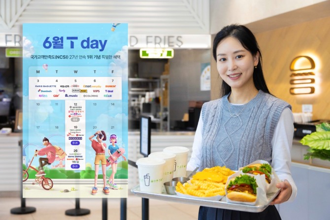 6월 T day에는 △쉐이크쉑 전 제품 30% 할인 △파리바게뜨 1000원당 500원 할인 △도미노피자 방문포장 50% 할인 △피자헛 방문포장 50% 할인 △던킨 40% 할인 △이디야 아메리카노 50% 할인 등의 파격적인 혜택을 제공한다. SK스토아 3만원 이상 주문 시 30% 할인 혜택도 새롭게 추가됐다.