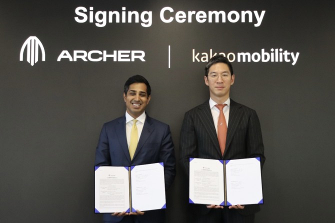 지난 28일 카카오모빌리티와 아처는 판교 사옥에서 관련 협약식을 진행했다. 협약식에는 장성욱 카오모빌리티 미래이동연구소장, 니킬 고엘(Nikhil Goel) 아처 최고 사업총괄 책임자(CCO, Chief Commercial Officer) 등 주요 관계자들이 참석했다.