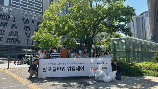 최근에는 카카오모빌리티 임직원 참여 프로그램도 운영했다. 그동안 임직원들의 건강을 위해 진행돼 온 사내 걷기대회 프로그램에 플로깅(plogging, 줍다와 조깅하다의 스웨덴 합성어) 미션을 더해 운영한 '판교 클린업 워킹데이'가 지난달 21일부터 10일간 열렸다.