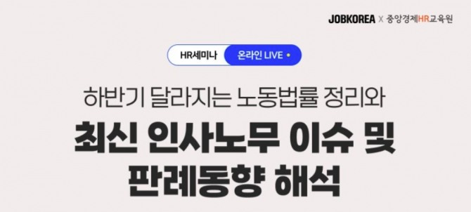 이미지 확대보기이번 웨비나는 노동법률과 인사노무 관련 사항들이 오는 하반기부터 새롭게 달라짐에 따라 이를 기업 인사담당자들에게 알려주기 위한 목적으로 마련됐다. 웨비나는 오는 26일 실시간 온라인 스트리밍으로 진행된다.