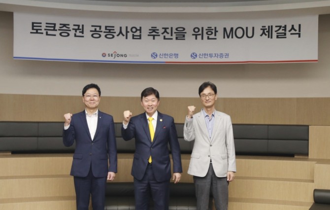이미지 확대보기세종텔레콤은 지난 21일 경기도 과천시 소재 세종텔레콤 본사에서 신한은행, 신한투자증권과 토큰증권 공동사업 추진을 위한 전략적 업무협약을 체결했다고 24일 밝혔다.