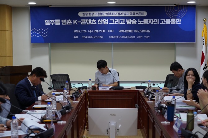 이미지 확대보기24일 국회 의원회관 제6간담회의실에서 '질주를 멈춘 K-콘텐츠 산업 그리고 방송 노동자의 고용불안'을 주제로 토론회가 개최됐다. 방송 노동자의 목소리를 듣고 현장의 고용 불안 실태조사 결과를 알리기 위한 자리가 마련된 것.