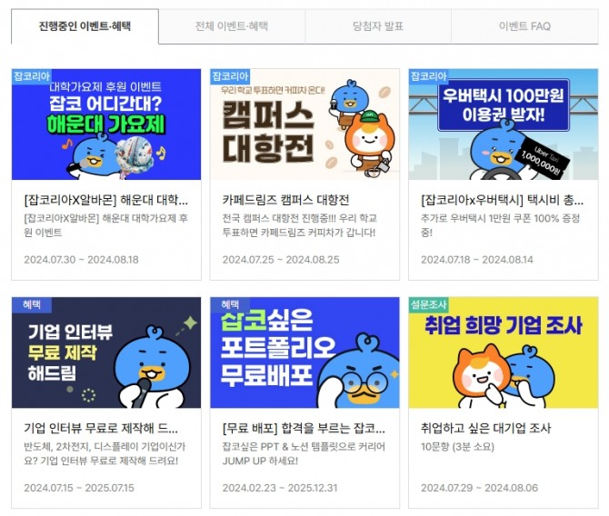 이번 이벤트는 잡코리아 '취업톡톡 게시판'과 알바몬 '알바토크 게시판'에서 '시원하게 이직할 때 써야 하는 잡코리아 서비스'와 '파도처럼 빠르게 우리동네 알바 구할 수 있는 알바몬 서비스' 명을 댓글로 작성하면 된다.