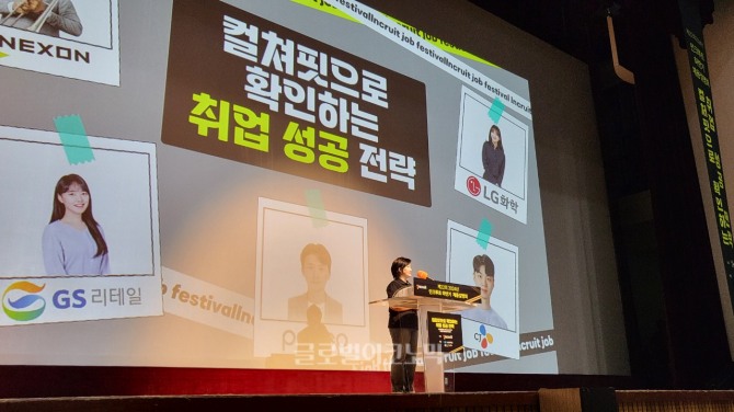 이날 채용설명회에 참여한 기업은 넥슨, 포스코, CJ, GS리테일, LG화학으로 대기업 취직을 목표로 하는 이들이라면 누구나 한 번쯤은 꿈꿔봤을 라인업으로 갖춰졌다. 덕분에 1층 좌석은 채용설명회에서 취업에 유리한 팁을 하나라도 얻기 위한 이들로 가득 찼다.