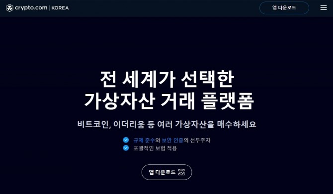 이미지 확대보기12일 가상자산 업계에 따르면 크립토닷컴 홈페이지에 한글이 추가됐다. 불과 얼마 전까지만 해도 영어로 열렸던 주소가 한국에서의 접속을 인식하고 한국어로 전환됐다. 크립토닷컴 앱 역시 그간 없었던 한국어가 선택 가능하도록 추가됐다.