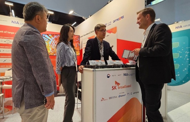 이미지 확대보기SK브로드밴드는 25일(현지시각)까지 독일 프랑크푸르트에서 열리는 유럽 최대 규모의 광통신 박람회인 'ECOC2024'에 참가해 AI, 클라우드 등으로 급증하는 데이터 트래픽을 처리할 수 있는 광통신 부품 및 장비를 선보인다고 24일 밝혔다.