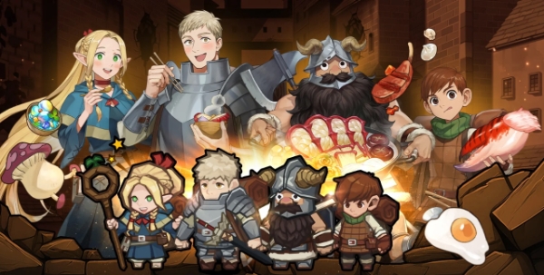 이번 컬래버레이션을 통해 던전밥의 주인공 '라이오스'와 그 일행인 하프엘프 '마르실', 하프풋 '칠책', 드워프 '센시' 4인이 게임 내 캐릭터로 등장했다.