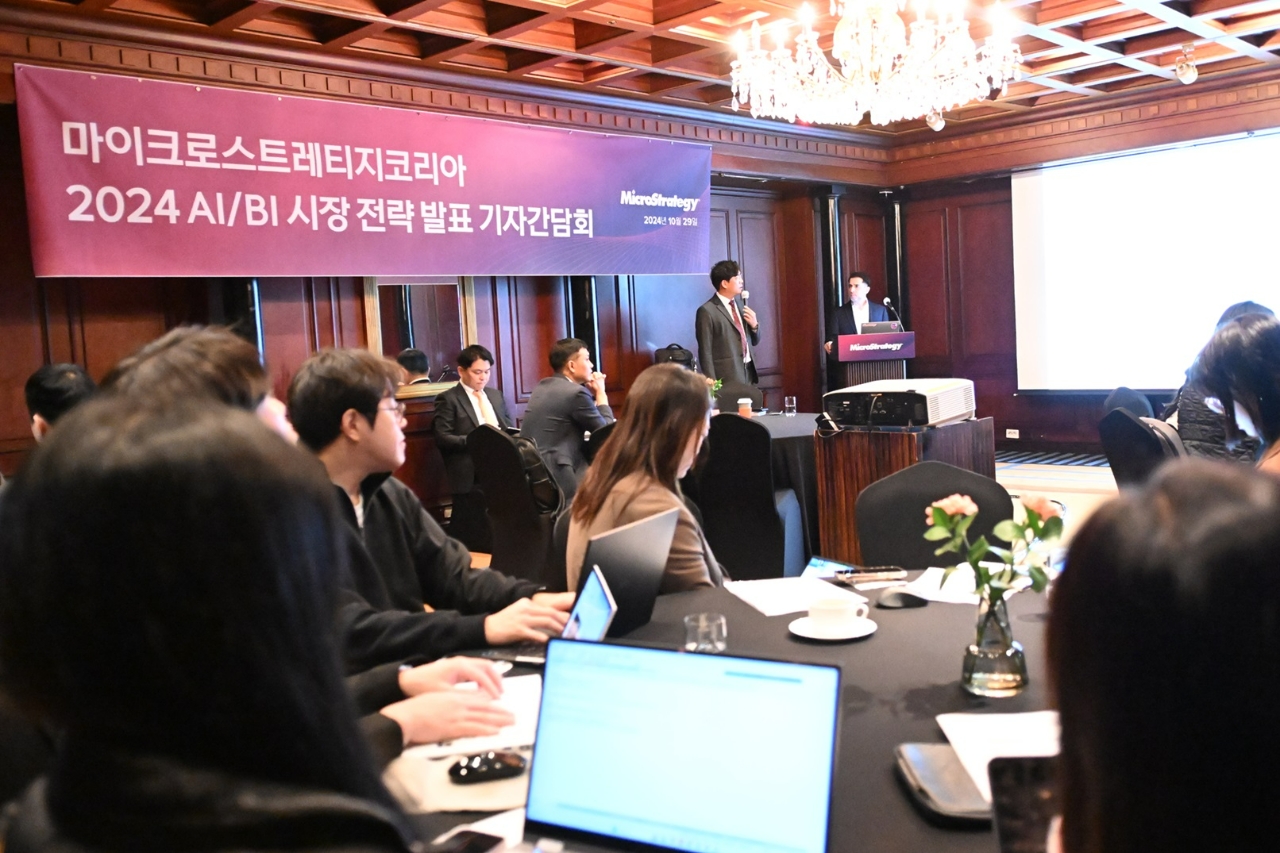 이미지 확대보기마이크로스트래티지 코리아(이하 MSTR)가 29일 삼성 그랜드인터컨티넨탈 호텔에서 '2024 AI/BI 시장 전략 발표' 기자간담회를 가졌다. 이날 간담회에는 로넨 나이슈타인 아태 지역 총괄 부사장이 자리해 한국 시장 진출을 앞둔 포부를 전했다.