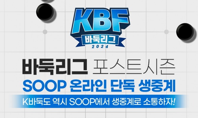 이미지 확대보기SOOP은 ‘K바둑’과 함께 이달부터 ‘제47기 SG배 한국일보 명인전’ 결승과 ‘Sh수협은행 사랑海 해군 vs 여자 연승대항전’, ‘2024 KBF 바둑리그’ 포스트시즌까지 생중계한다고 6일 밝혔다.