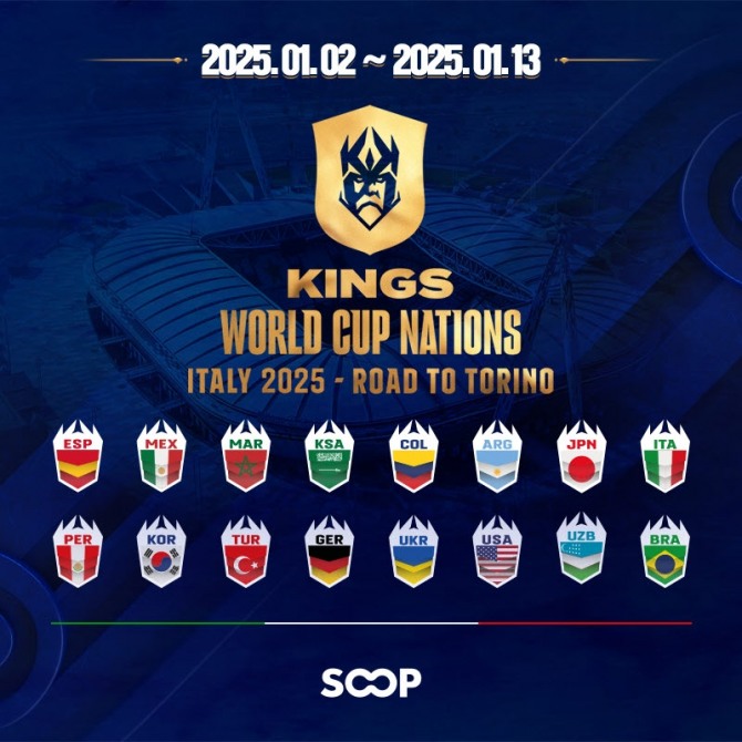 SOOP은 17일오후 5시부터 진행하는 ‘킹스 월드컵 2025’ 팀 대한민국의 출정식을 단독 생중계하고, 대한민국 경기를 포함한 주요 경기를 한국어로 생중계할 예정이다.