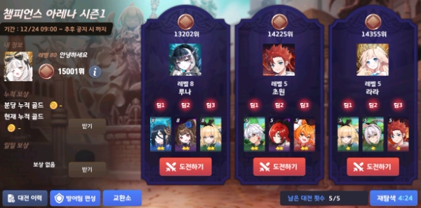 이번 업데이트에선 신규 콘텐츠 '챔피언스 아레나'가 추가됐다. 이용자가 3종류의 덱을 선택, 다른 플레이어와 3전2선승제로 맞붙는 이용자 간 경쟁)(PvP) 콘텐츠로 시즌 단위로 운영된다.