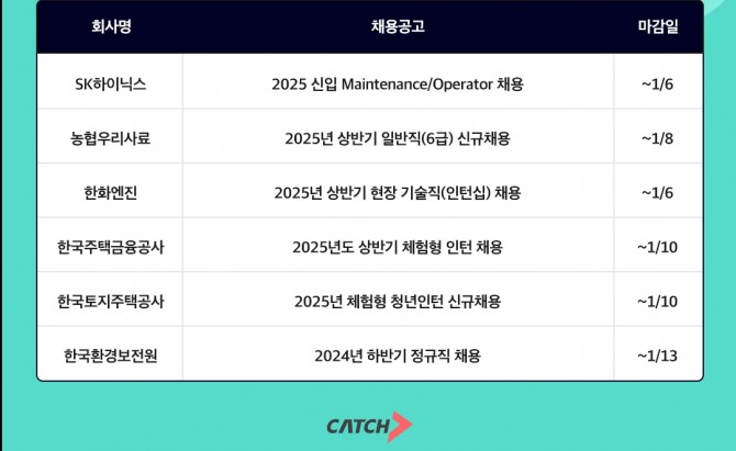 이미지 확대보기SK하이닉스는 오는 1월 6일까지 ‘2025 신입 채용’을 진행한다. 모집 직무는 메인터넌스(Maintenance)와 오퍼레이터(Operator)로 고등학교 또는 전문대학 졸업자, 2025년 2~3월 내 입사 가능한 자, 교대근무와 방진복 착용이 가능한 자를 대상으로 한다.