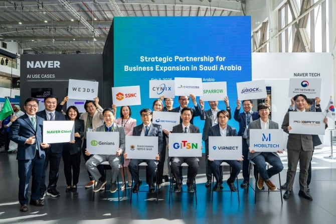 이미지 확대보기네이버클라우드는 10일(현지시간) 사우디아라비아 리야드에서 열린 'LEAP 2025' 행사에서 'LEAP 2025'에 참가한 스타트업들과 함께 '사우디 디지털 시장 진출을 위한 국내 디지털 기업 간 정보교류 및 사업협력'을 골자로 한 MOU를 체결했다.