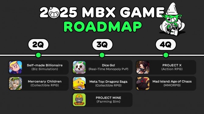이미지 확대보기2025년 신작 라인업 7종도 공개했다. '재벌 1세: 주식 전쟁(경영 시뮬레이션/2분기)', '머시너리 칠드런(수집형 RPG/2분기)', '다이스 고!(캐주얼/3분기)', '메타토이: 드래곤즈 사가(수집형 RPG/3분기)', '프로젝트 MINE(파밍 시뮬레이션/3분기)', '프로젝트 X(액션 RPG/4분기)', '혼돈의 시대: 매드 아일랜드(MMORPG/4분기)' 등 다양한 장르의 글로벌 외부 게임을 마브렉스 생태계에 온보딩 할 방침이다.
