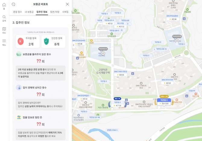 부동산 평가 플랫폼 집폼은 더욱 자세한 정보를 제공한다. '보증금 리포트' 서비스에서는 집주인이 보증금을 돌려주지 않은 횟수는 몇 번인지, 집이 경매에 넘어간 이력이 있거나 집을 담보로 빌린 돈은 얼마인지, 압류 내역은 어떤지 등의 자세한 정보를 확인할 수 있다.