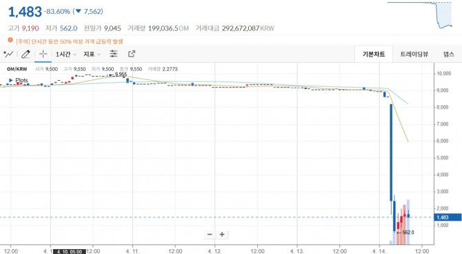 국내에서도 피해자가 적잖이 발생했다. 만트라(OM)는 국내 원화마켓 거래소 중에 코인원에 상장돼 있다. 14일 오전 9시 기준 직전 24시간 동안 약 3억5500만원이 거래됐다. 국내 투자자들도 하룻밤새 큰 피해를 입은 셈이다.