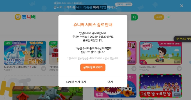 5월 27일 오후 3시, 쥬니버 공식 종료…웹·앱 서비스 모두 중단