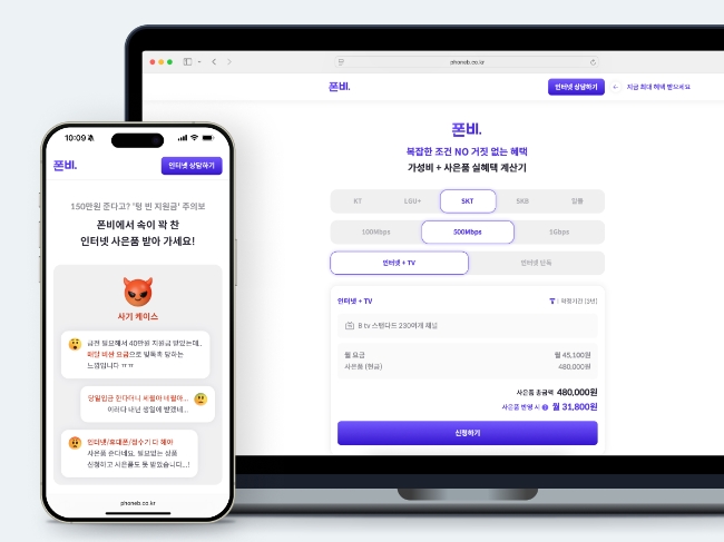 폰비는 지난해 12월 기준 월간 알뜰폰 개통 3000건을 돌파했으며, 현재는 월 6만 명에 달하는 이용자를 확보하고 있다. 기존 알뜰폰 요금제 분석과 상담 노하우를 바탕으로 올해 5월부터 인터넷·TV 가입 서비스로 영역을 확장했다.