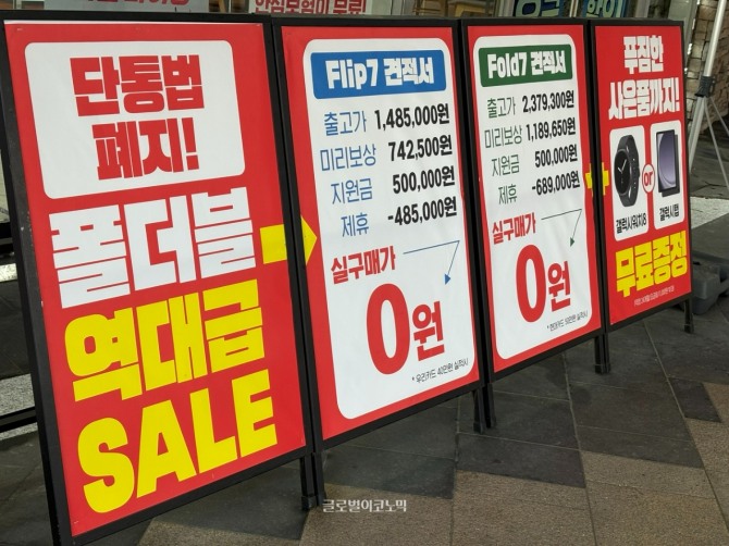 이미지 확대보기일부 유통점에서는 예비 고객에게 SNS나 문자메시지로 "갤폴드7/플립7 0원 판매", "차비 30만 원 지급" 등 노골적인 광고를 쏟아내고 있다. 온라인 커뮤니티에서도 "오프라인 매장에서 갤럭시 Z 플립7, Z 폴드7을 번호이동 조건으로 사실상 마이너스폰(차비폰)으로 받을 수 있다"는 인증기와 구체적인 구매 후기, 거래 정보 공유가 쏟아지고 있다.
