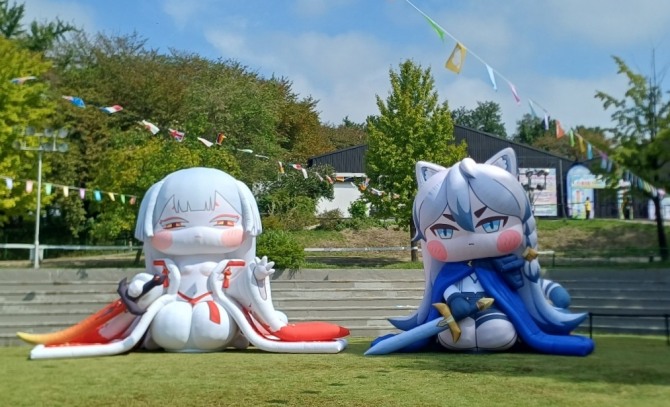 야외 공간에는 2주년 이벤트 '그을음 끝에 피어나는 빛무리'의 주인공 '우로스'와 '티그(영웅)'의 거대 풍선 조형물이 설치됐다. 다섯 종류의 대형 포토존에 더해 '운동회'라는 테마에 맞춰 박 터뜨리기 게임 공간, 슬러시·솜사탕 노점도 즐길 수 있다.