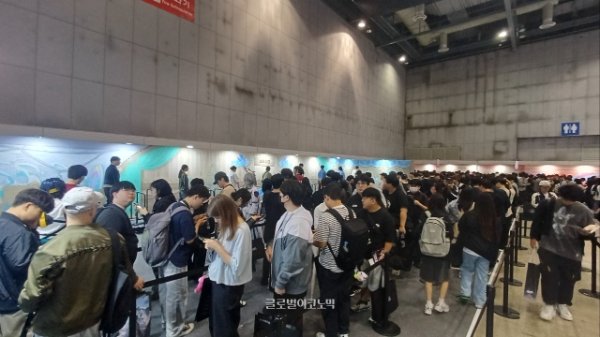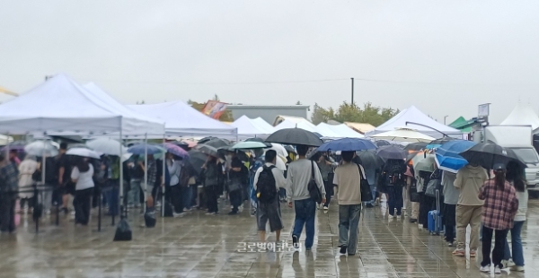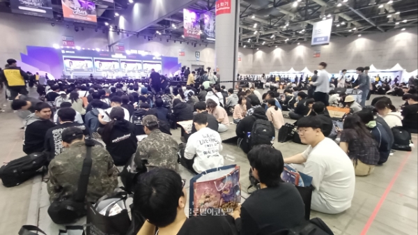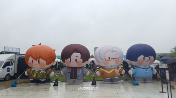 기상청에 따르면 지난 10일, 고양시에는 최대 시간당 강수량 9mm로 적지 않은 비가 내렸다. 그럼에도 불구하고 야외에 마련된 '붕괴 3rd'와 '미해결사건부' 전시 공간에는 우산을 쓴 채 줄지어 이벤트를 즐기는 인파가 몰렸다. 비 속에서도 게임 속 캐릭터들을 '코스프레'한 채 현장을 찾은 이들도 적지 않게 눈에 띄었다.