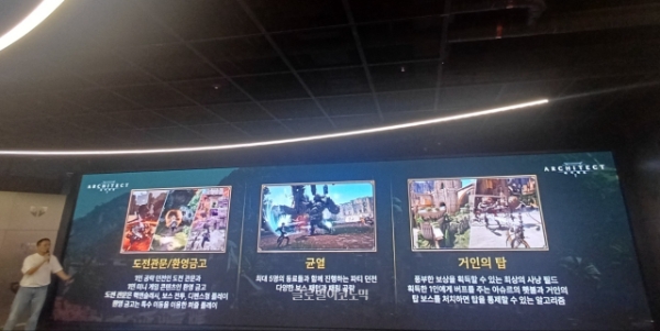 김민규 드림에이지 사업실장이 '아키텍트'의 주요 콘텐츠들을 소개하고 있다. 사진=이원용 기자
